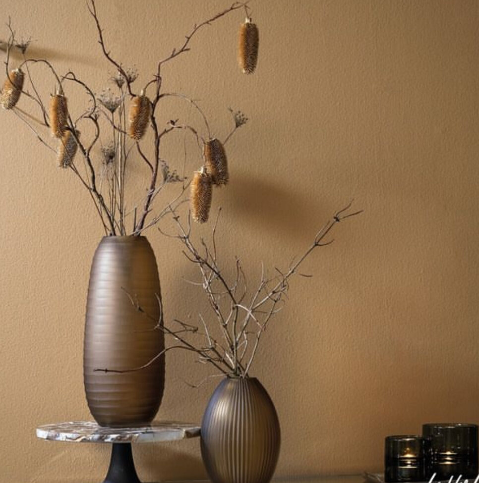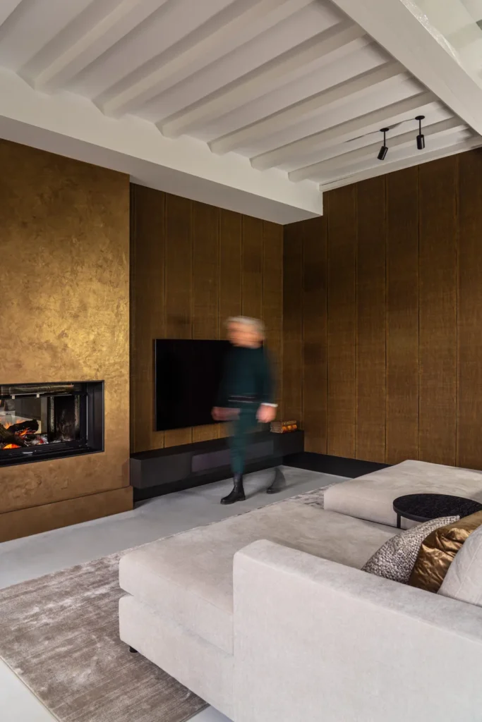 In mijn interieurontwerpen pas ik altijd kleur toe. Dit kan heel subtiel door een verfkleur op de wanden, een behang waarmee je iets meer warmte creëert of wandbekleding waarmee je een statement maakt. Hierboven enkele voorbeelden (Golden Combinations foto’s Pure-Original Paint).