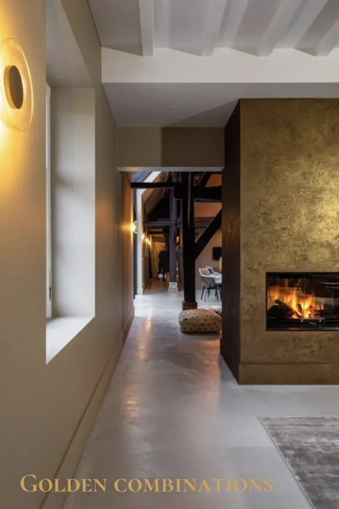 In mijn interieurontwerpen pas ik altijd kleur toe. Dit kan heel subtiel door een verfkleur op de wanden, een behang waarmee je iets meer warmte creëert of wandbekleding waarmee je een statement maakt. Hierboven enkele voorbeelden (Golden Combinations foto’s Pure-Original Paint).